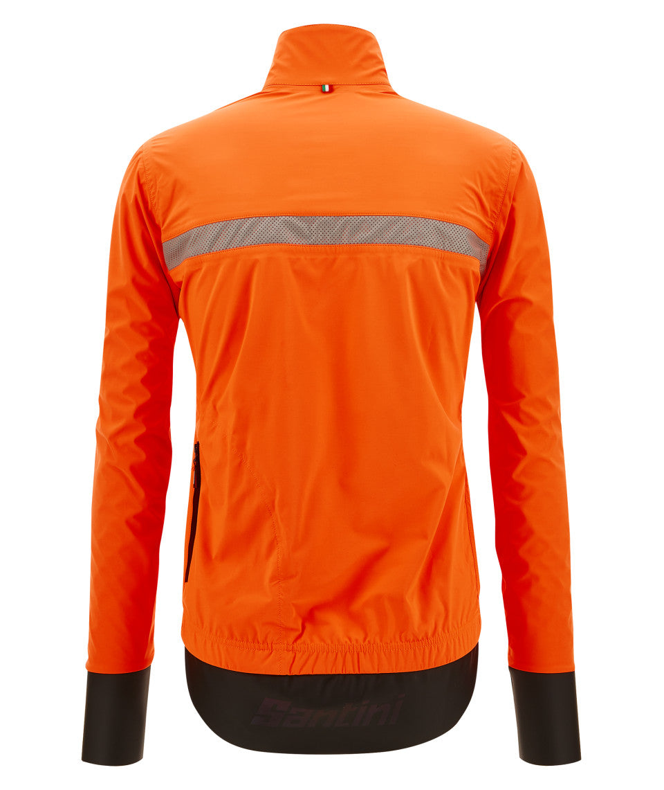 High reflex, perforated fabric insert on the chest and rear. High reflex Santini branding on shoulder and back tail.