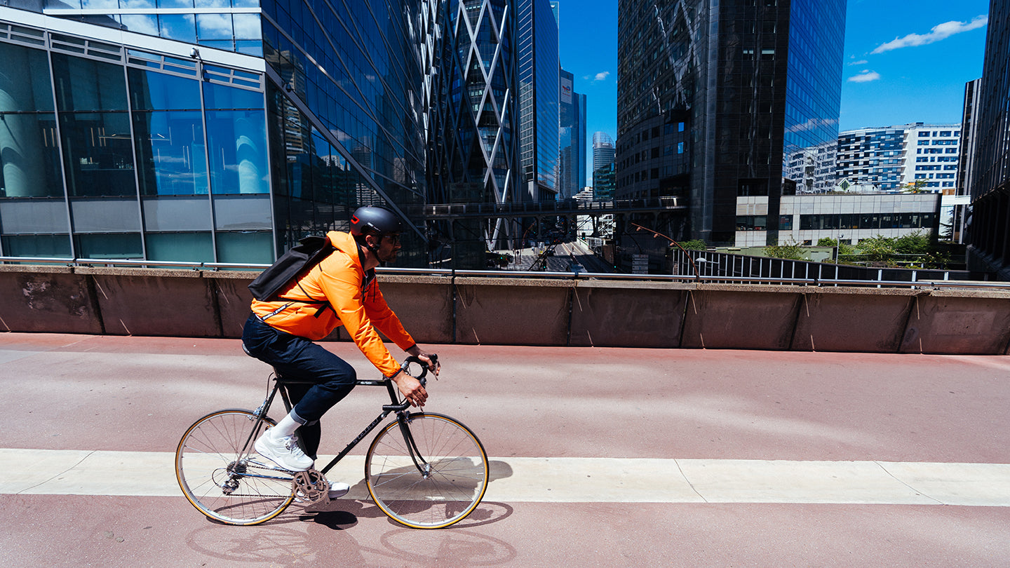 This reversible jacket has been studied to be worn both on and off the bike.