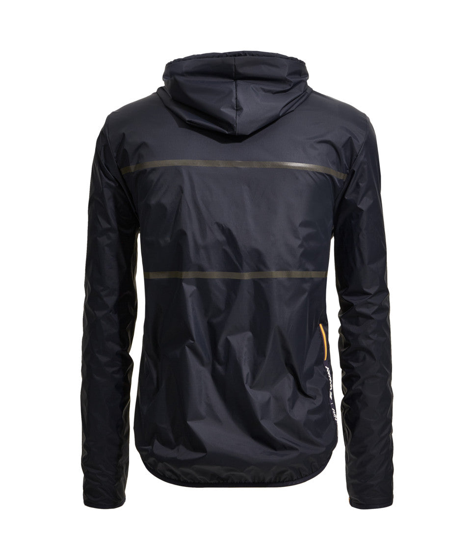 The outer shell providing protection against the wind and showers is made of the original water-resistant and wind -proof Kway featuring reflective details that guarantee greater visibility while riding in the dark hours and convenient side and chest pockets that make it perfect as a casual garment.