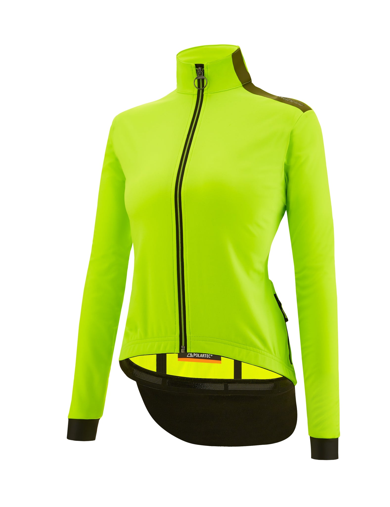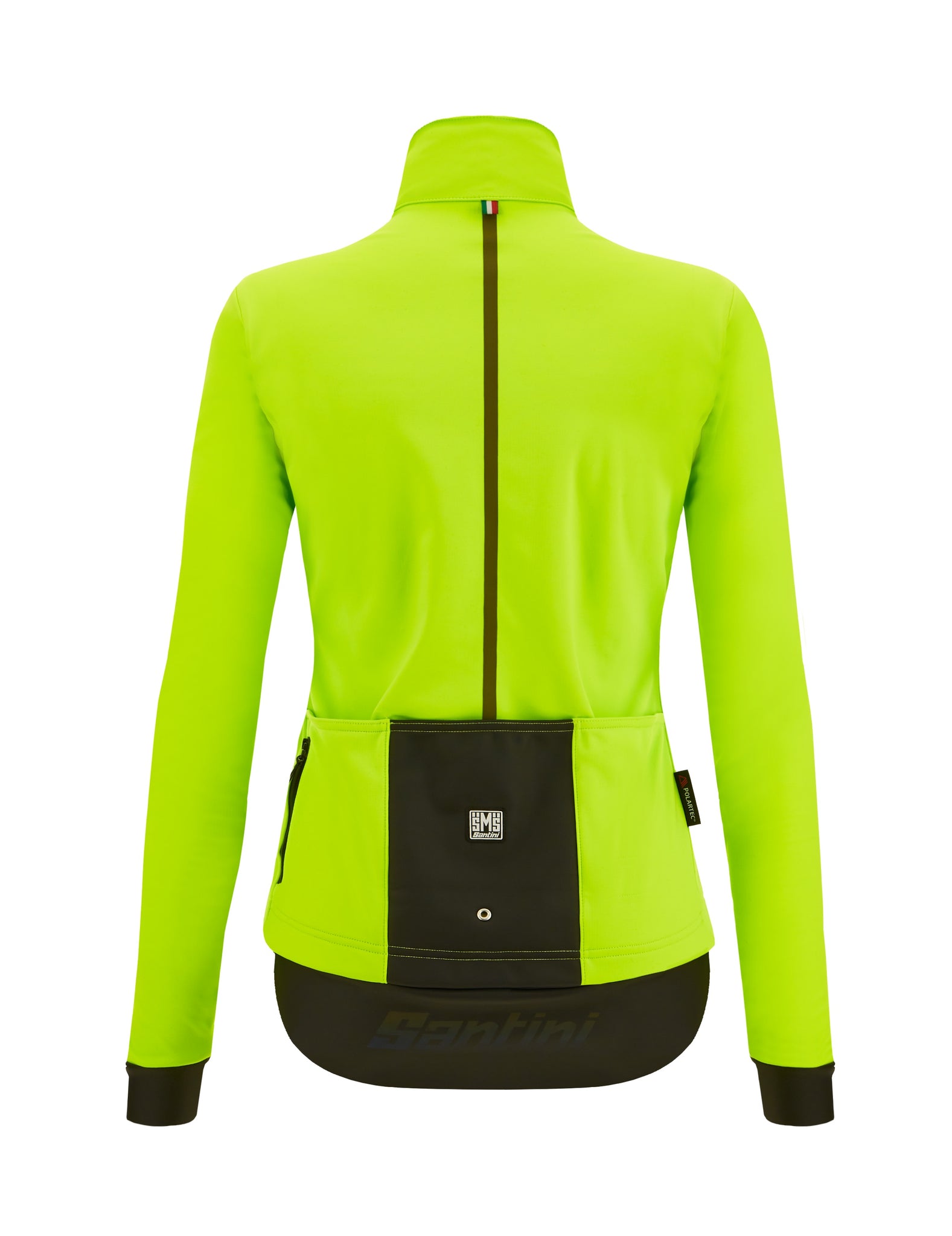Reflective shoulder band, back inserts, and reflective Santini logo ensure maximum safety in low visibility.