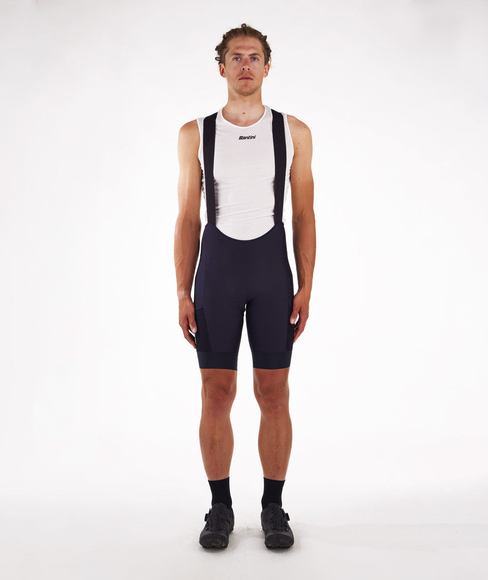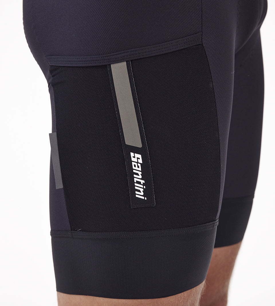 Santini's Gravel Cargo Bib Shorts are specifically designed for the rugged demands of off-road cycling, these bib shorts combine durability, comfort, and practicality. Crafted from exclusive 200 g/m² Gabardine fabric with 25% elastane and a dense diagonal rib design, they offer exceptional abrasion resistance while providing a soft touch against the skin and light compressive support.