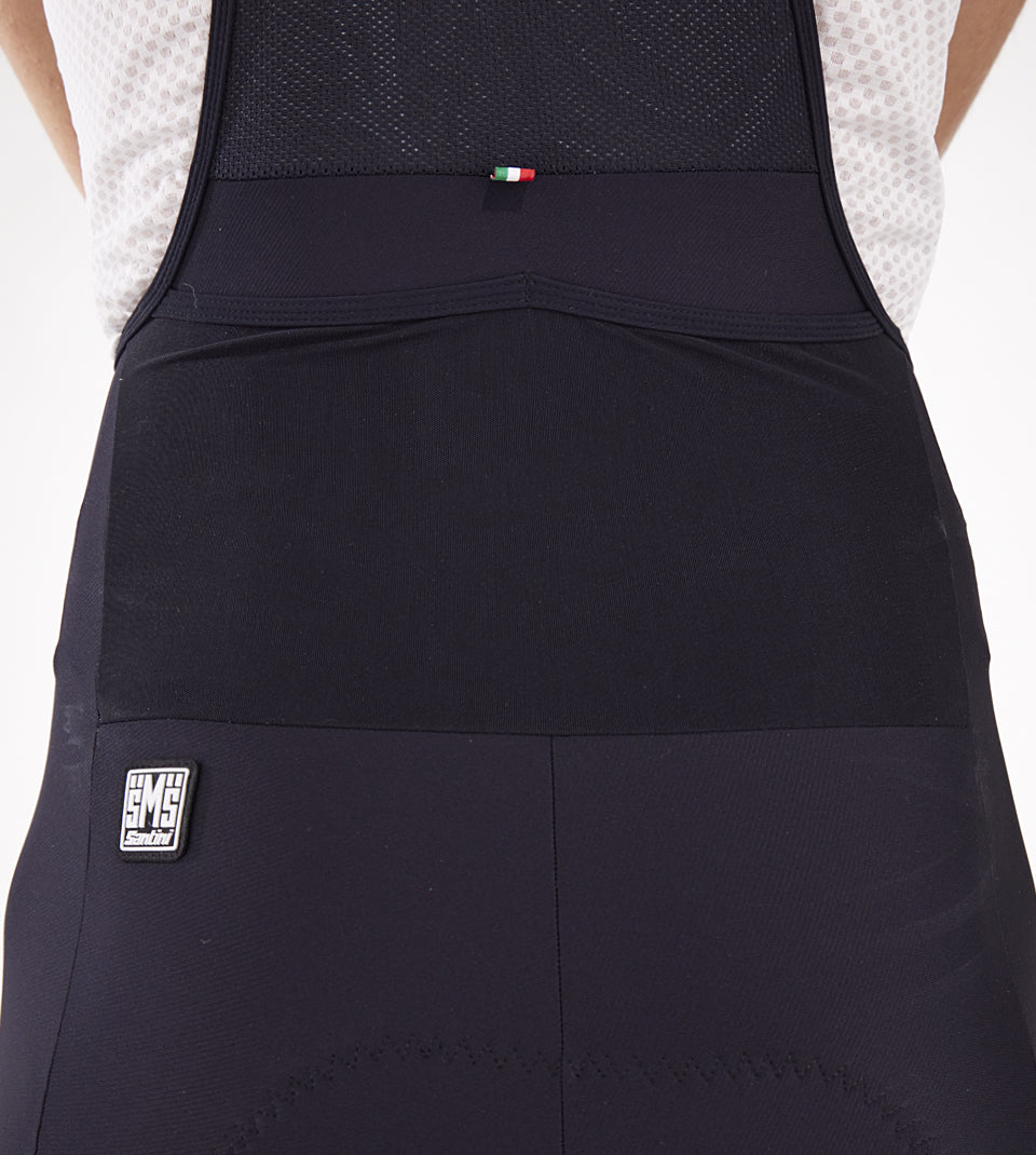 The front bibs feature ribbed elastic, and the back includes breathable mesh to enhance ventilation and comfort during extended periods in the saddle.