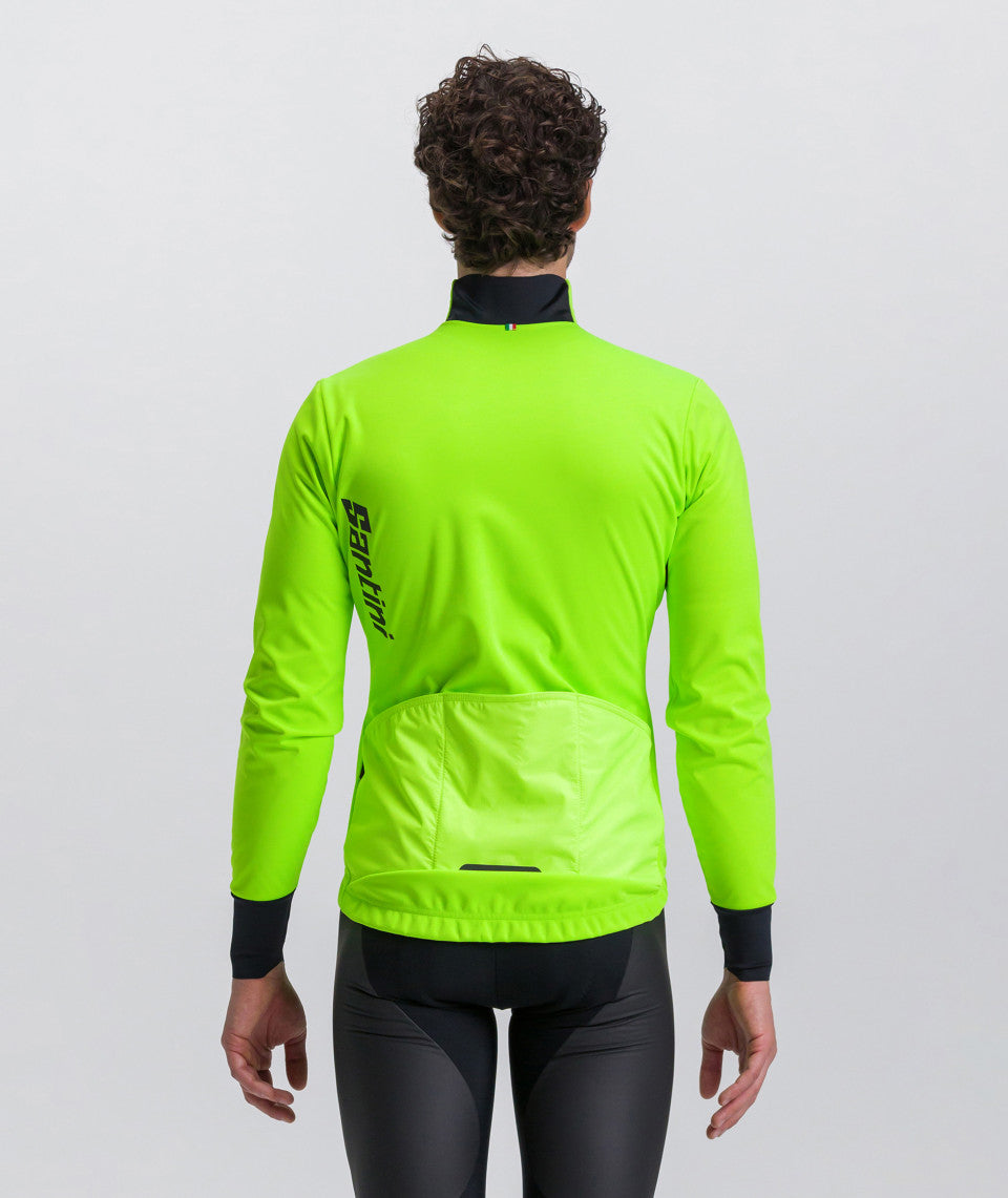Made with POLARTEC® Powershield, advanced four-way stretch, micro porous softshell membrane enabling the optimal release of heat generated by the body while riding while providing class-leading protection against the elements. The fabric is uniquely designed with both the internal and facing fabrics dyed in exclusive colors for Santini.