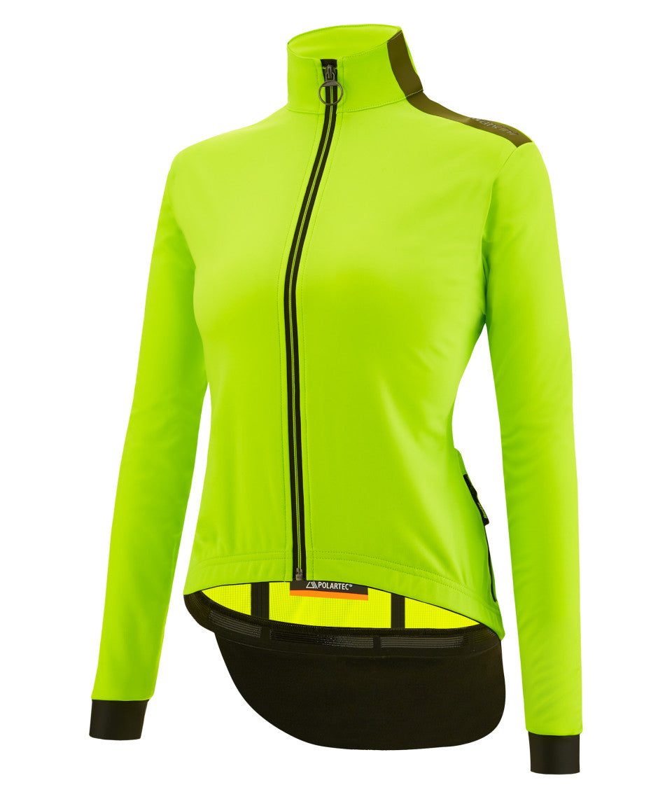 Reflective shoulder band, back inserts, and reflective Santini logo ensure maximum safety in low visibility.